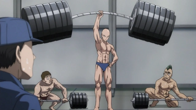 Estando listos para pelear, Genos le pide a su maestro que se lo tome en serio. Genos ataca a Saitama incesantemente con sus cañones de incineración, pero este nada más lo esquiva de un lado para el otro. Cuando cree que por fin le dio, un Saitama despreocupado se burla detrás de él tocándole la mejilla. Tras lanzarle un puño, Genos le recrimina que no se está tomando en serio la batalla. Le pide que lo dé todo e, instantáneamente, Saitama aparece enfrente suyo. El cíborg intenta darle una patada, pero Saitama se posiciona detrás suyo para su sorpresa y lanza su puño hacia él; Genos experimenta una sensación de muerte inminente, justo cuando el puño se detiene a pocos centímetros de su rostro, dejando salir una onda expansiva impresionante.
