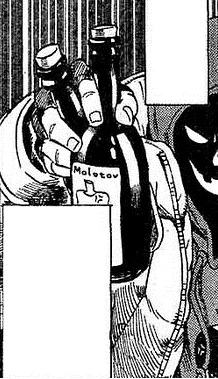 Cócteles molotov: Banero lleva consigo una gran cantidad de cócteles molotov, cada uno etiquetado con su insignia personal y la palabra 'Molotov'.