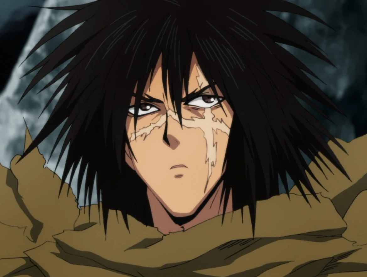 Su discurso crítico daña el orgullo de Death Gatling hasta el punto en que desenfunda desesperadamente su cuchillo para cargar contra Garou a toda costa con el fin de definir la existencia significativa de héroes de clase baja en el ojo del público y la Asociación de Héroes. Sin embargo, Garou lo golpea directamente en la cara, dejándolo inconsciente mientras que al mismo tiempo destruye su pistola Gatling, mostrando su disgusto por su discurso hipócrita.