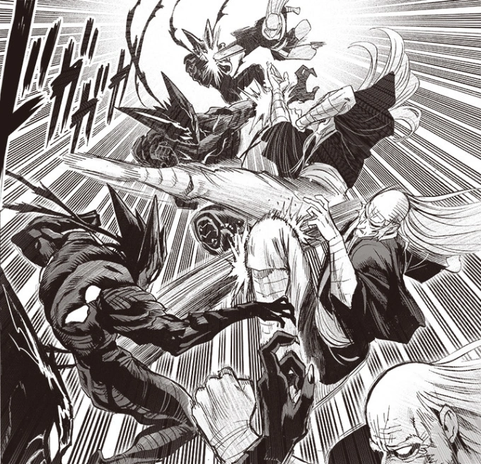 Mientras tanto, Garou todavía está enterrado bajo tierra, retorciéndose por el daño que sufrió en su pelea contra Superalloy Darkshine. En un momento de debilidad y triunfo simultáneos, Garou reconcilia la intención de su existencia y, en lugar de sucumbir a sus heridas, evoluciona una vez más, adquiriendo una apariencia mucho más monstruosa.