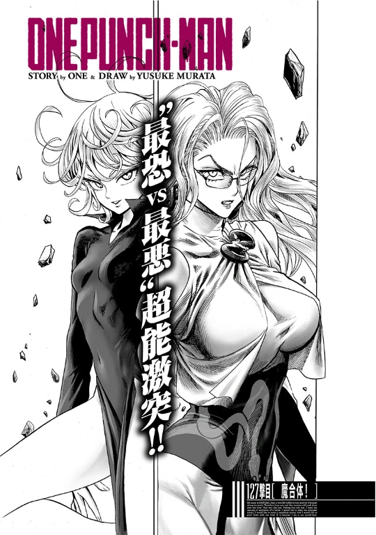 Psykos se fait attirer de force hors de son laboratoire par Tornade Tragique qui lui pose un anneau d'immobilisation. Psykos arrive à se libérer pendant son ascension et pose à son tour un anneau autour de Tornade Tragique pour l'attirer vers elle dans les profondeurs. Au même moment, Saitama demande au monstre peureux de leur faire une visite guidée. Le monstre invite ses passagers à regarder sur leur droite, mais c'est à ce moment que Psykos traverse le sol à cet endroit en fonçant vers le plafond. Psykos et Tornade Tragique se rencontrent dans une explosion au-dessus du grand gouffre du nid des monstres. Si de la bouche de Psykos ne sortent que des menaces de mort, de celle de Tatsumaki vient une interrogation : où est l'autre enfant détenu par l'Association des Monstres dont elle a eu vent ?[1]