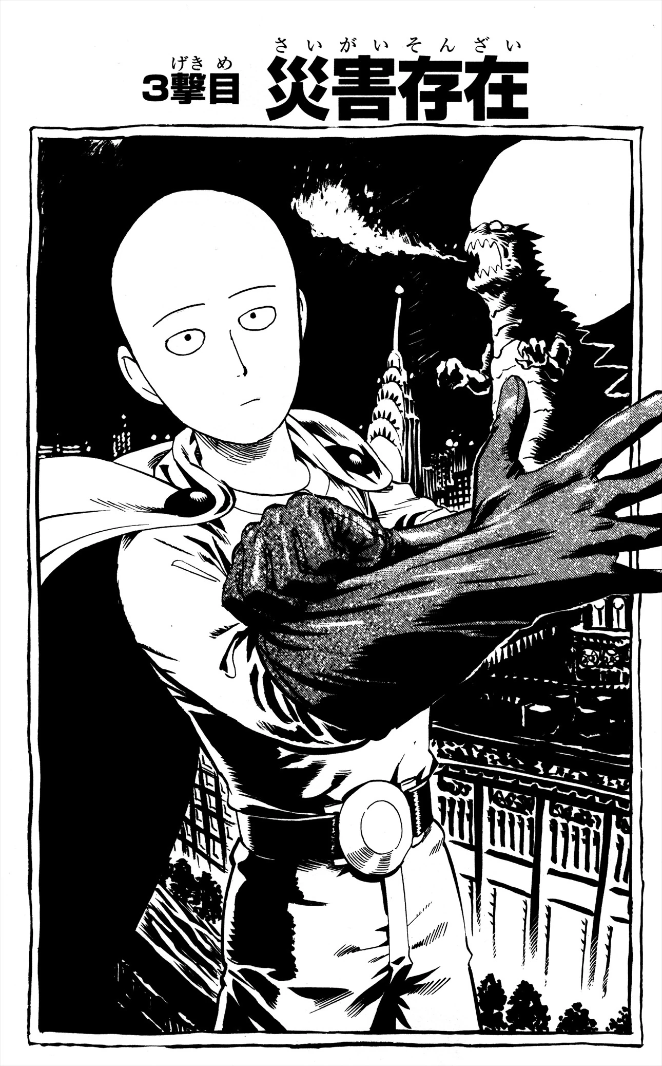 Bonjour les dégâts ! (災害存在, Saigai sonzai) est le 3ème chapitre, qui met en question le désir de la force ultime, comme celle que détient déjà le héros principal.