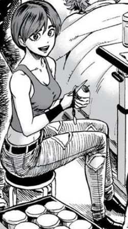 - Dans les illustrations du tome 10. On la voit rendre visite à ses frères, car elle n'était pas présente lors de la bagarre contre Garoh.