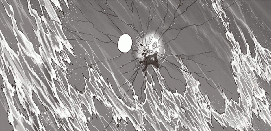 Le capitaine du navire et son équipage se rendent à l'évidence rapidement : ils n'ont plus aucun moyen de piloter leur navire. Les commandes ne répondent plus. Cependant, ils aperçoivent sur le pont Saitama, qui vient d’atterrir après avoir mis une raclée à Eau Minérale Océanique Dévian. Grâce à sa force, il arrive (en fichant ses pieds dans le sol de la plateforme de décollage) à utiliser le Gotz Okkie comme un surf et à glisser sur les vagues qui tourmentent l'océan.
