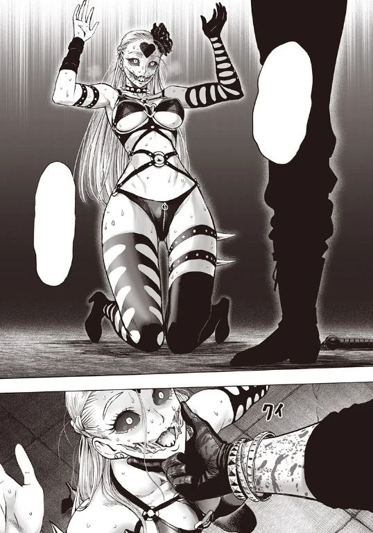 Elle a un équivalent dans le webcomic qui asservit les gens grâce à un rayon laser et qui était caractérisée par ses lunettes en forme de cœur. Cet équivalent a pour nom "Princesse Matuvue (怪人姫メガネメガミ, Kaijin Hime Megane Megami)". ONE a abandonné ce personnage pour le remplacer dans le manga, parce que son apparence était trop inspirée de celle d'un personnage provenant d'un autre manga dont il n'est pas auteur.