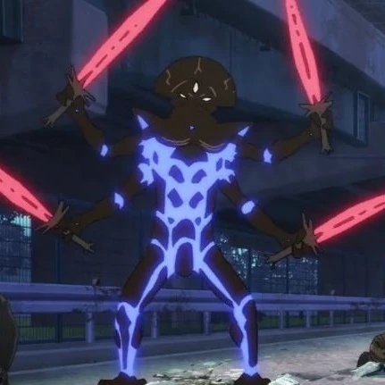 Le Roi des monstroterres est une créature humanoïde à la peau marron, dont la tête a la forme d'une coiffure maya en demi-cercle, avec 3 yeux blancs. Il mesure à peine plus qu'un humain ordinaire. Le Roi des monstroterres est doté de 4 bras et est muni de 4 épées rouges. Des bandes fluorescentes bleues parsèment son corps.