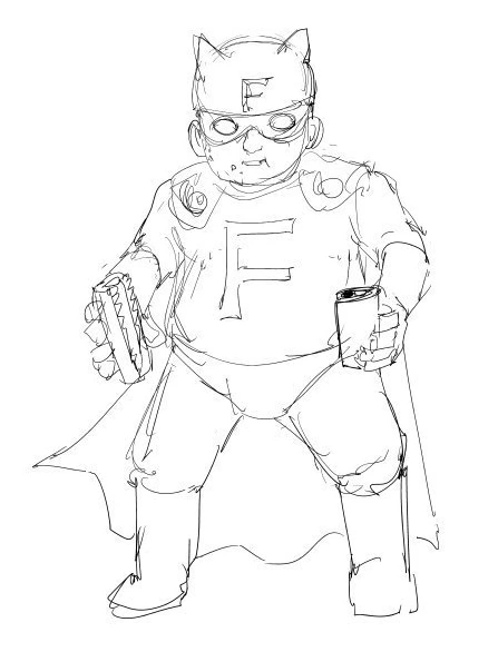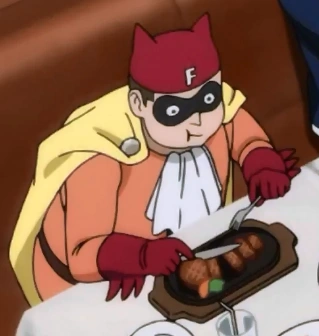 - Питающийся Боец Футоши работает героем как часть его программы по снижению веса. Его маска для глаз - это очки, которые показывают, сколько калорий он потерял.[1]