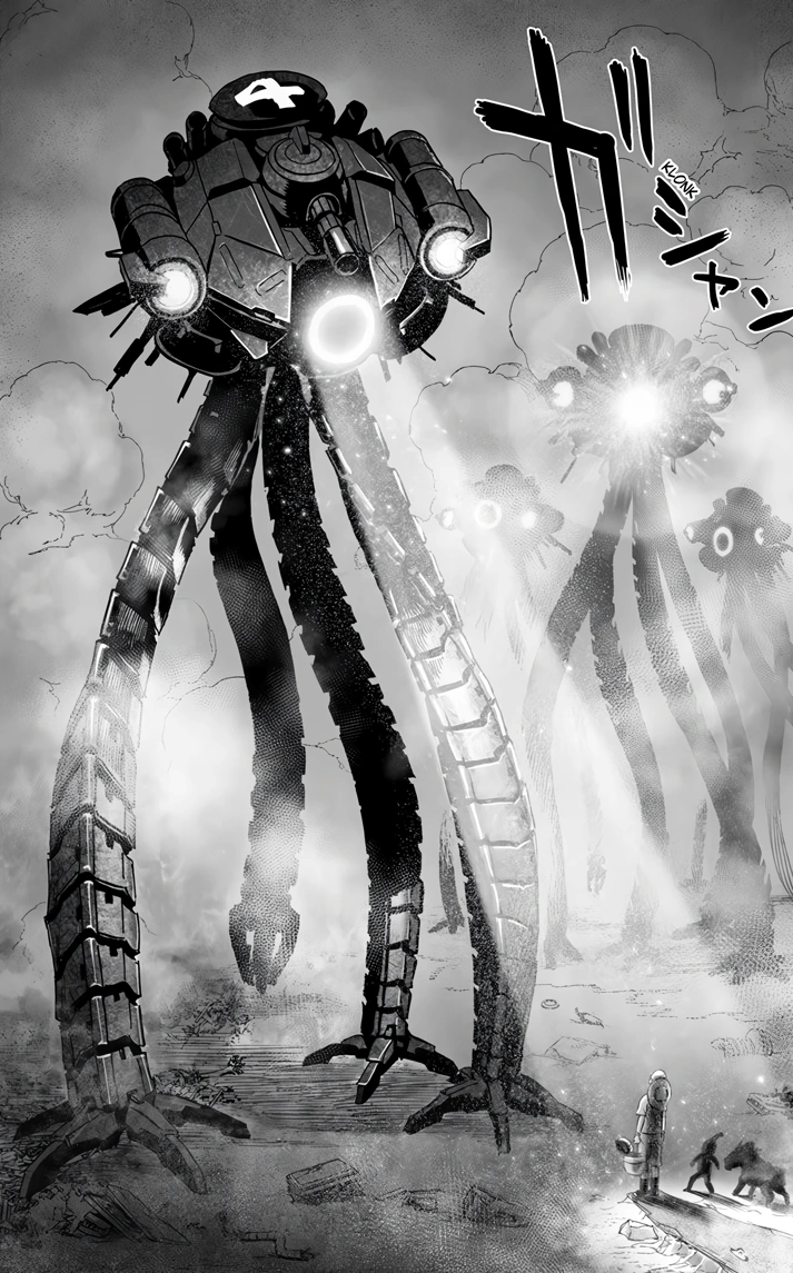 - Tank-Walker Robots: Several large, four-legged robots armed with massive cannons, significantly larger than cars and trucks.[14]