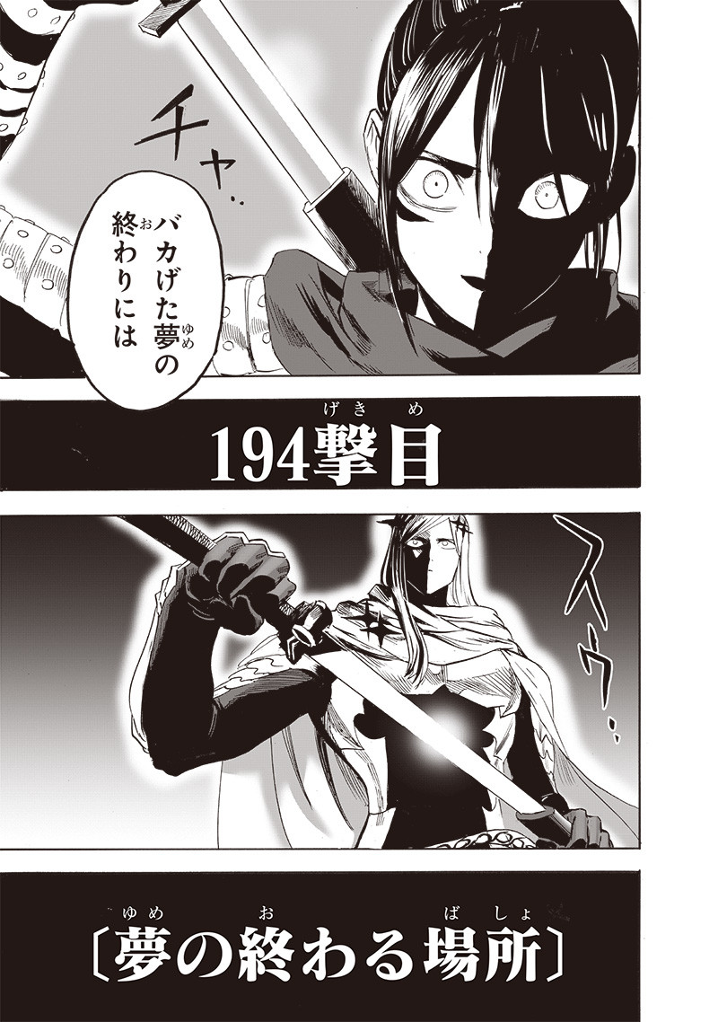 "The Place Where Dreams End" (ゆめわるしょ, Yume No Owari Bashio, Tonari: 241) is the retconned 196th chapter of the One-Punch Man manga series.[1]