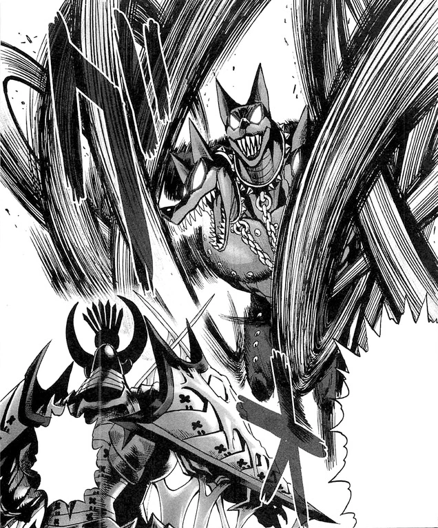 Waganma and Child Emperor are making their way out of the Monster Association Headquarters when they run into G5.