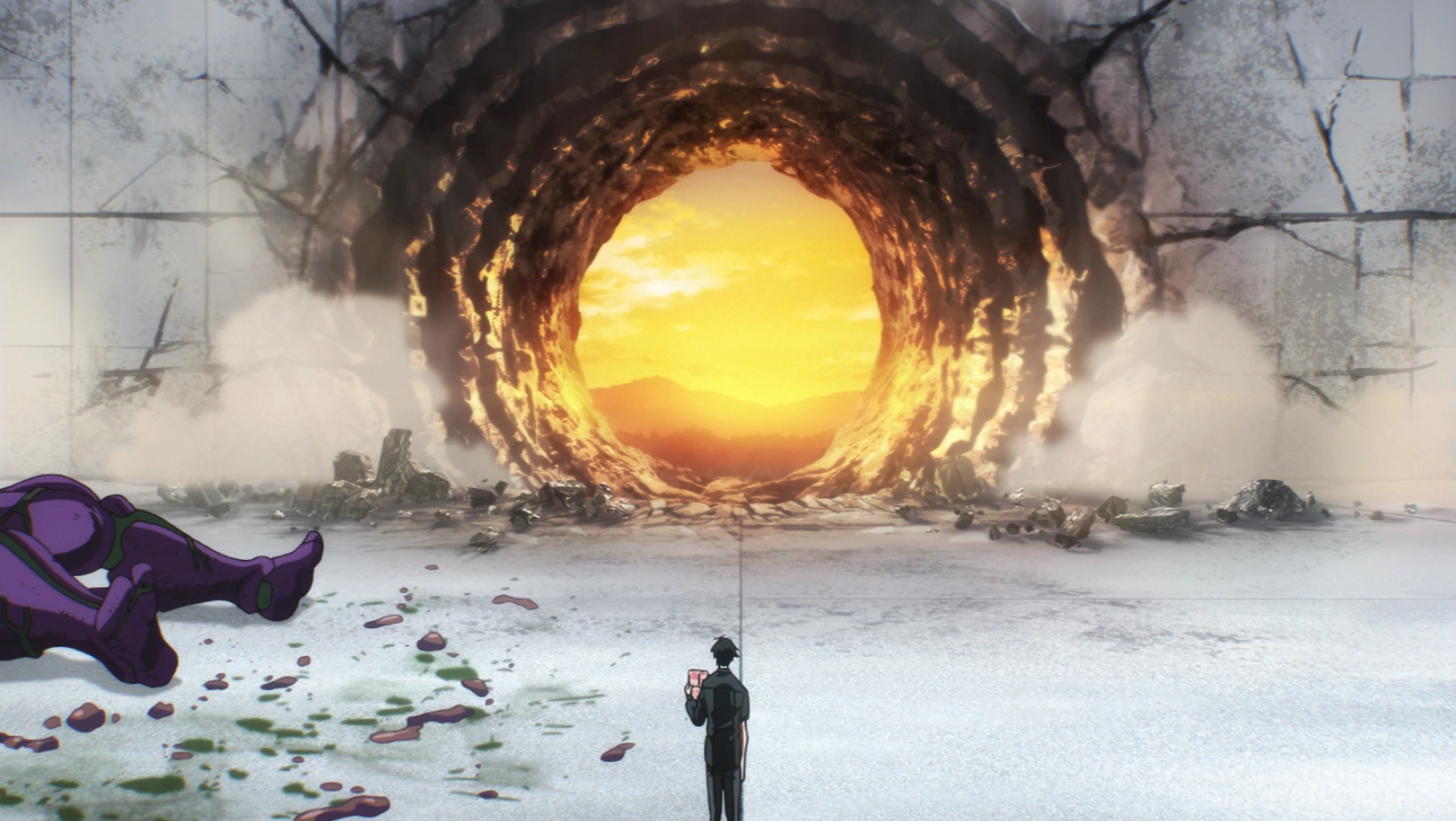 As Carnage Kabuto turns Carnage Mode and appears to gain the upper hand, it becomes clear that Saitama is merely surprised to realize the store discount day is that day rather than the next. He easily defeats Carnage Kabuto and departs with Genos to take advantage of the remaining discounts. Witnessing this, Dr. Genus abandons his ambitions of artificial evolution, realizing that he himself must change. After the credits, officials from the Hero Association inspect the site of the House of Evolution blast and discuss Genos' destructive capabilities.