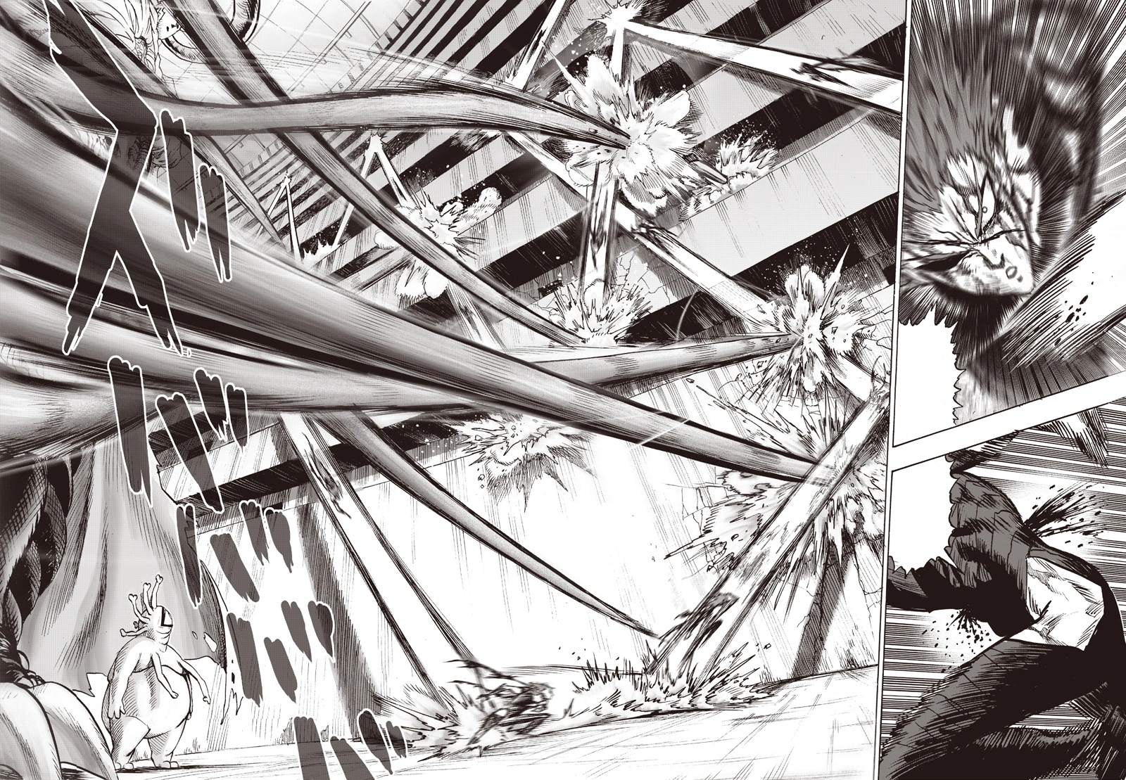 Garou vs. Orochi is the fight between Garou and the leader of the Monster Association, Orochi.