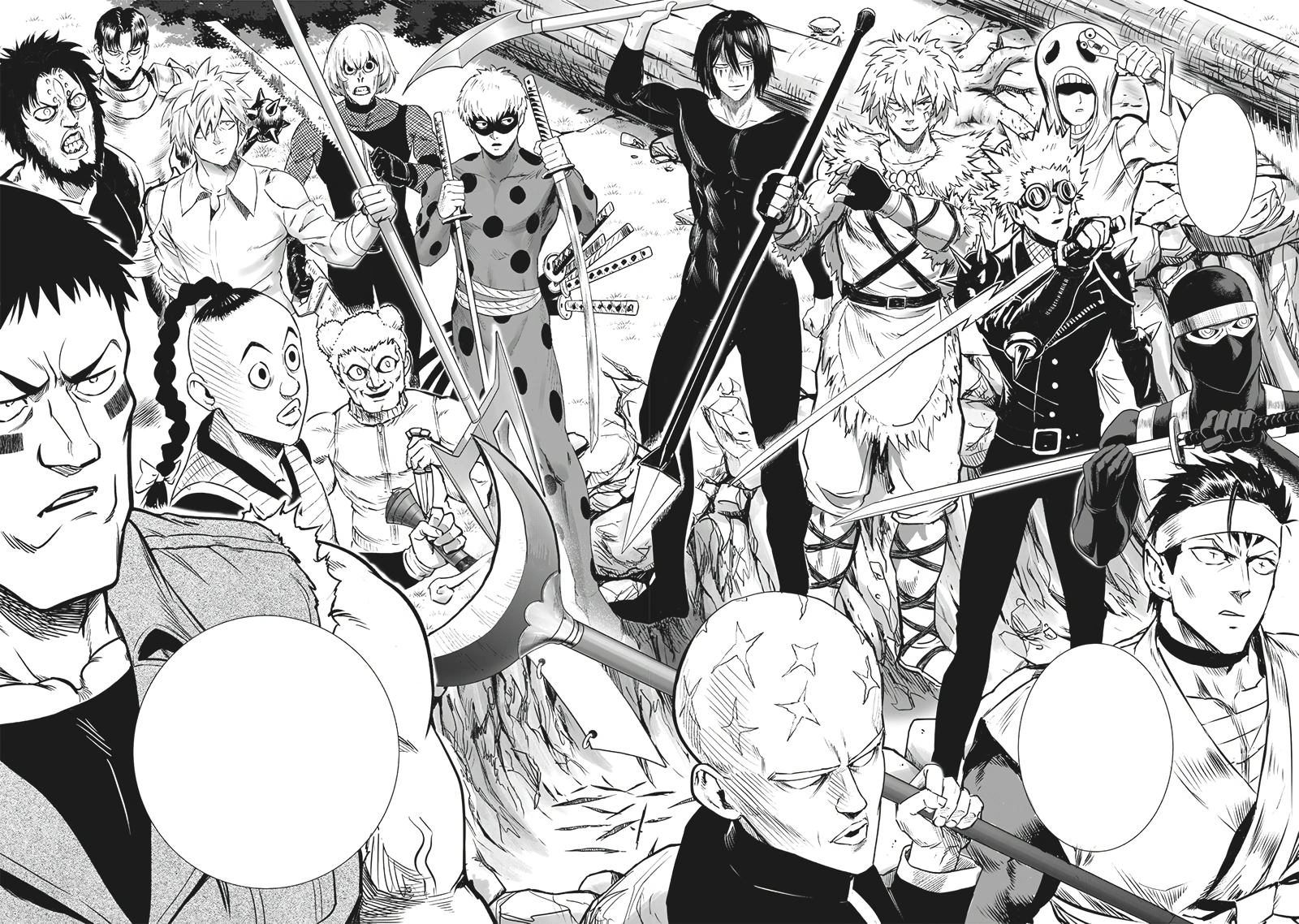 Saitama, uninterested in the "disciple and rival" dynamic, decides to search for Manako himself, and tells everyone to go home. Genos, Sonic, and Flash encourage him before departing. Later, Saitama visits King to play video games and shows him a drawing of Manako. King recalls seeing the figure somewhere, and together, they head to where Manako is, successfully capturing her after setting a trap. Once Saitama, Flash, and Manako gather at Saitama's apartment, they agree to reach out to Sitch to contact Blast. When they arrive, they are surprised to find that Blast is already at the Hero Association Headquarters.