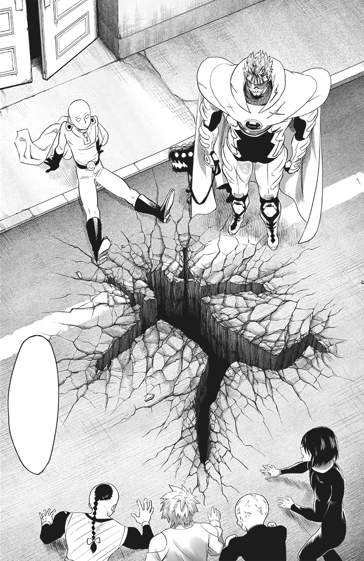 Suddenly, a crack opens in the sky, resembling a dimensional tear. This happens because Blast has wandered too far from his station. Byakko and Genbu, two divine beast guardians serving "God", burst through. They immediately cause destruction, leveling nearby city blocks. However, Void, now freed from "God's" influence and returned to being human due to Saitama's earlier knockout, and Blast put an end to this by overpowering the two divine beasts before Blast sends them back to another dimension where they came from.